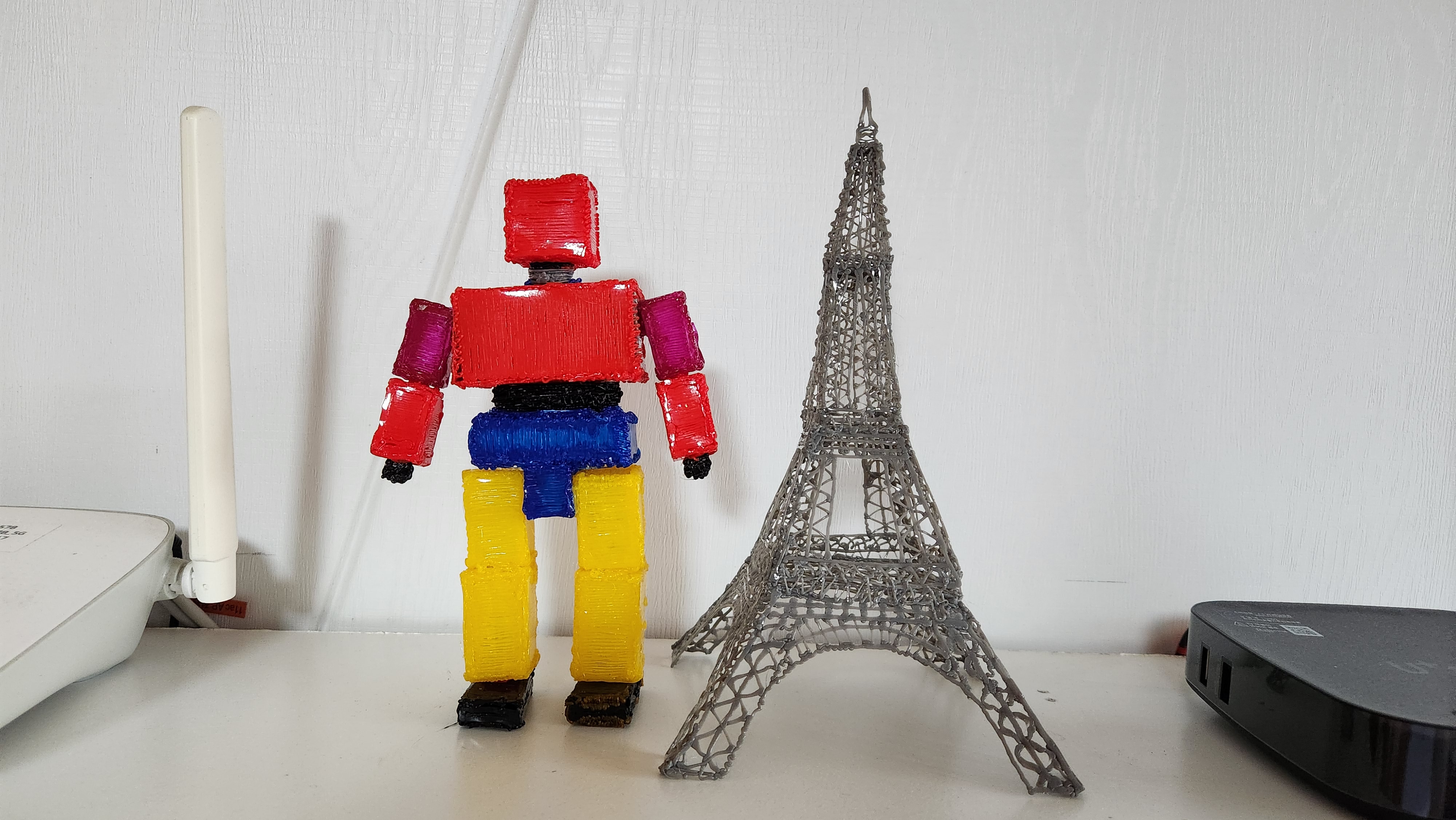8살 아들래미 생일로 3D펜을 사줬다. 애는 이렇게 저렇게 놀아보더니 흥미를 잃었고, 대신 내게 로보트를 만들어 달라 했다. 퇴근 후 1주일에 걸쳐 한땀 한땀 로보트 몸통, 머리, 팔, 다리를 만들어 붙였다. 그리고 완성!