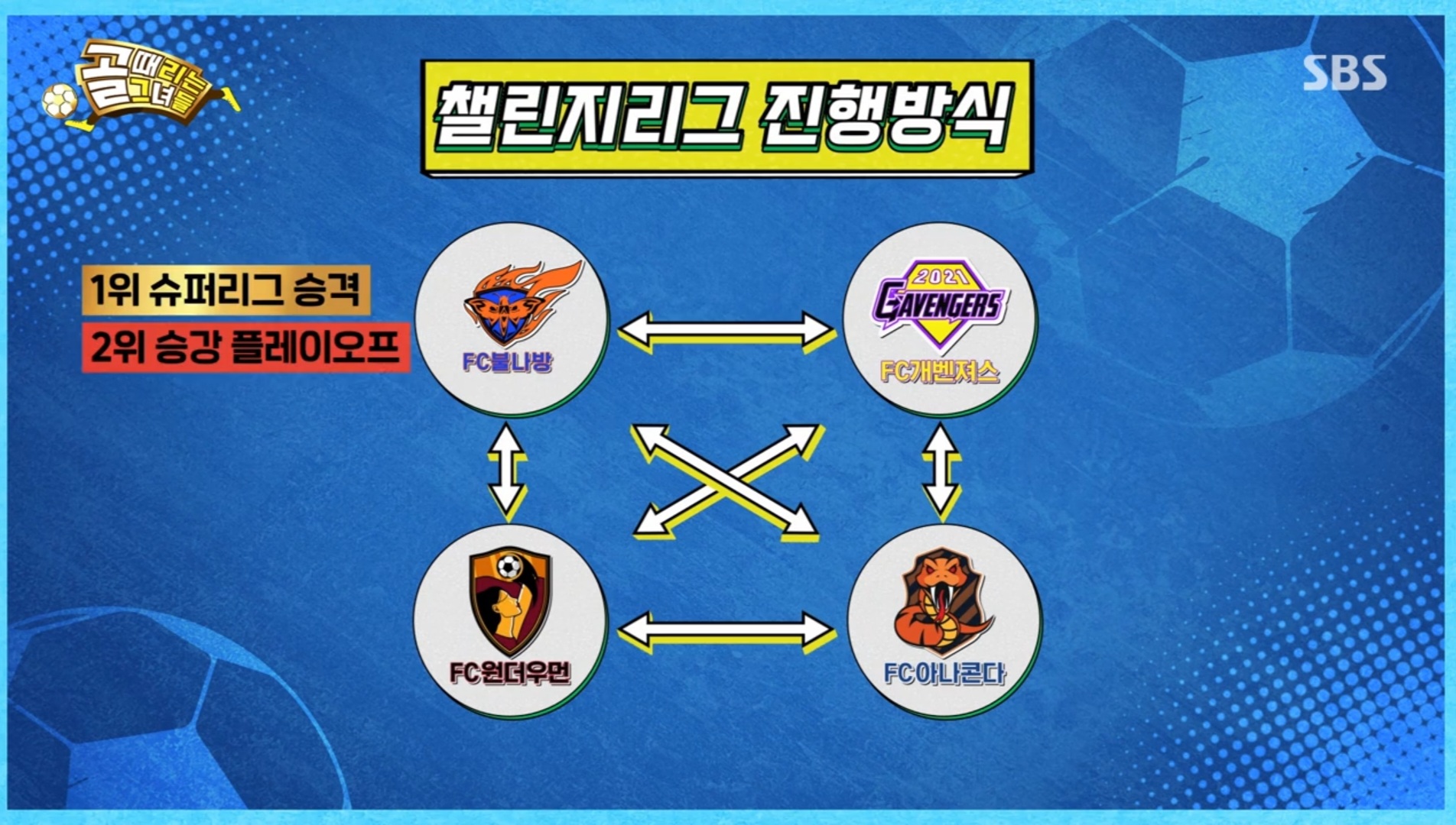 대망의 신규 리그가 시작되었다! 골때녀 22년 하반기 감독 팀매칭은 박지성의 구슬 뽑기로 진행되었다. 이제 방송도 슈퍼리그 2주, 챌린지리그 2주 형식으로 진행된다. 이른바 슈챌리그란다! 슈
