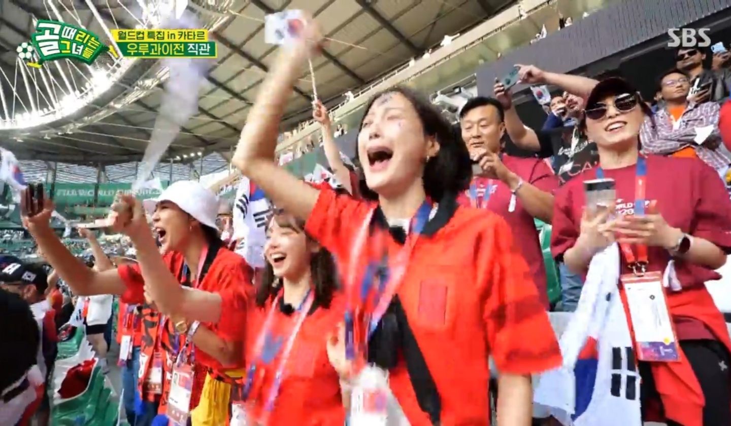 골때녀의 주장 4인이 이날 카타르 도하에 등장했다. 자비로 개인 응원차 온 멤버들도 어떻게 된 일인지 속속들이 모이기 시작했다. 이들은 모두 우루과이전을 보기 위해 온 것이다.