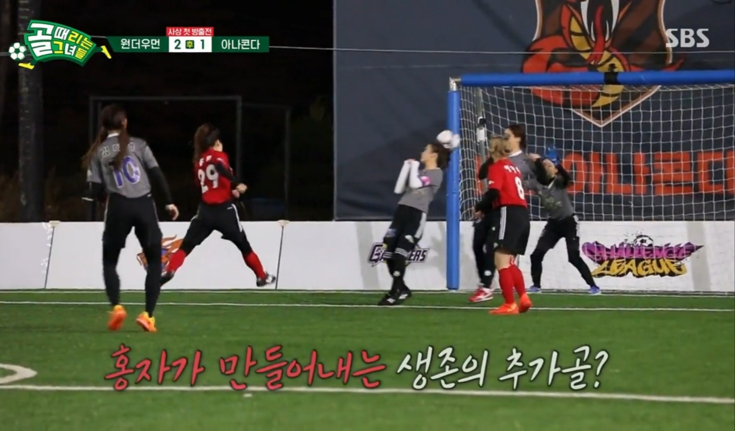 경기 막판에는 홍자가 해냈다. 에이미가 흘려준 볼을 받아 강력하게 슈팅을 날렸는데, 이 또한 김가영 볼 처럼 오정연 골키퍼가 손쓸 수 없을 만큼의 속도로 들어갔다. 물론 다른 골키퍼였다면 막을 수 있었을 거라고 보는 데 아이린, 조혜련, 아유미 등은 막을 수 있었을 지도 모른다.