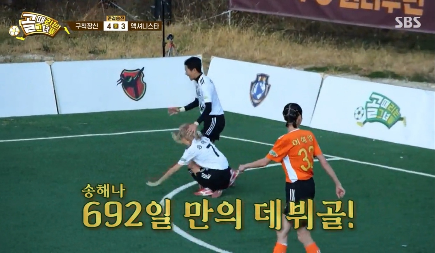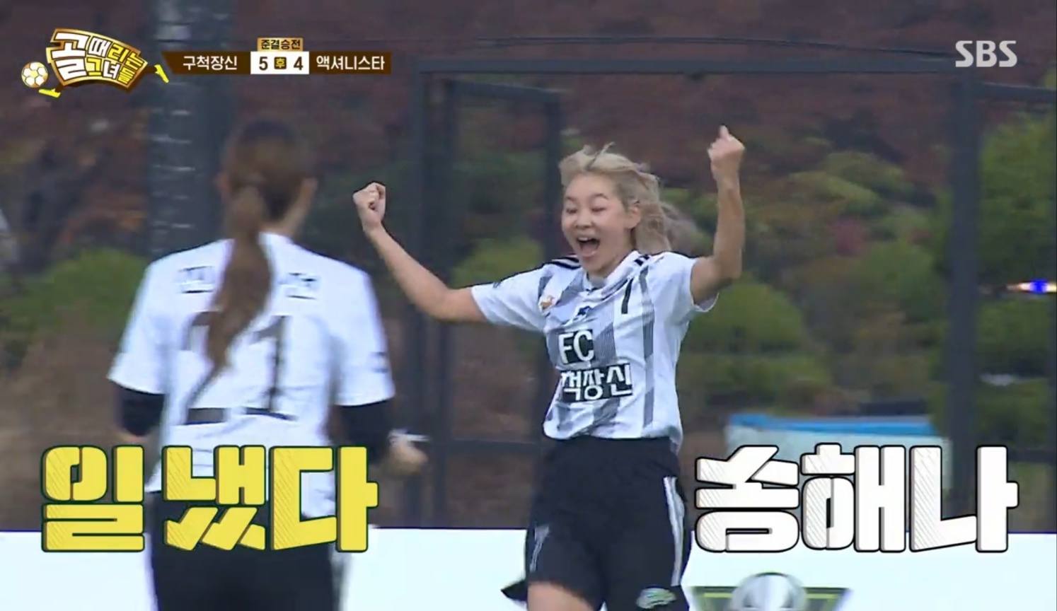 이현이는 자신의 팀에게 "두 발만 더"라며 독려했고, 감독은 송해나가 일을 낼 것 처럼 얘기했다. 그 말이 예언이 된 것인지, 후반전의 첫골은 송해나의 발끝에서 나와 다시 4대3이 되었다. 이를 또 다시 액셔니의 이영진이 만회하여 4대4로 균형을 마쳤다. 두 팀 다 팽팽한 공방 끝에 막판 3분지점에 이르렀는데, 결정적 한 방이 송해나의 발끝에서 나왔다. 바로 이현이 쏘아올린 킥인을 멋지게 방향을 바꿔 골망을 가른 것이다.