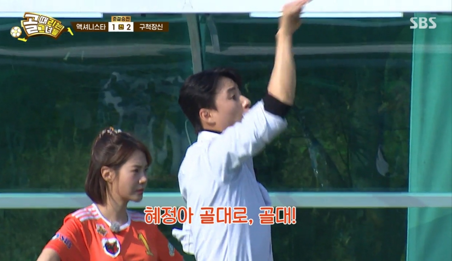 그러나 경기는 허경희와 이혜정의 신경전에서 그만 폭발한 이혜정에게 맨탈적으로 밀린 허경희가 경기에 집중하지 못하는 모습을 보여줬고 경기는 다시 원점인 2 대 2로 맞춰졌다. 1점은 이혜정, 1점은 송혜나의 헤딩 자책골이었다. 이후 핸드볼 반칙을 한 이영진의 실책으로 다시 허경희가 패널티 킥을 성공하여 1점을 달아나고, 액셔니가 다시 1점을 따라잡아, 전반전을 무려 3대3으로 마무리했다.